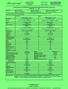 Es un documento oficial que requiere cada enlace de Microondas para poder operar en México. Lattice es una empresa certificadora autorizada por el organismo regulador del gobierno en México (IFT) para emitir dichas Constancias en las bandas Concesionadas de 7, 15, 23, 38 y 10.5 GHz.